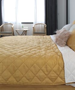 Chăn được thiết kế 2 mặt lụa, thêu tay thủ công, sử dụng bông D-Seal 6 oz