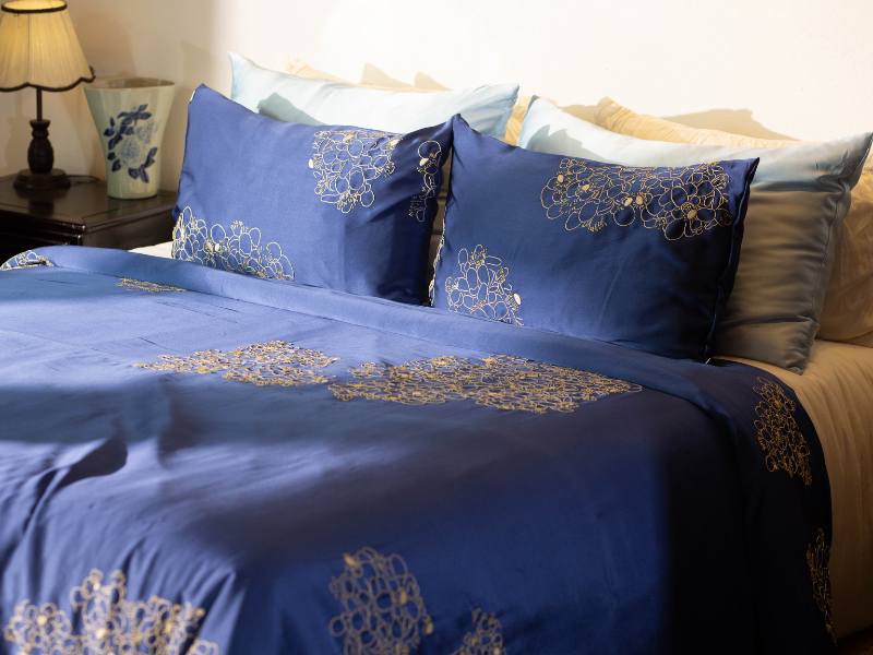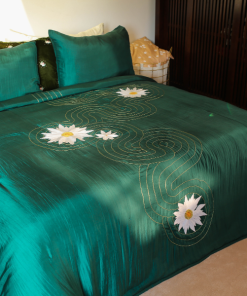Bộ chăn lụa satin Hoa bưởi thanh yên