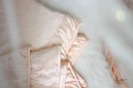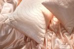 Vỏ gối được thiết kế 2 lớp lụa satin, 2 lớp bông D-seal 1.5oz và 2 lớp lót cotton 100%, khâu tay thủ công