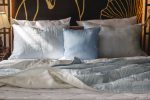 Vỏ gối được thiết kế 2 lớp lụa, 2 lớp bông D-seal 1.5oz và 2 lớp lót cotton 100%, khâu tay thủ công