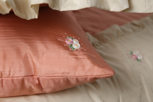 Vỏ gối thêu hoa hồng trà