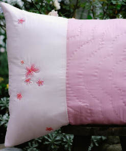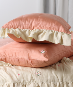 Vỏ gối được thiết kế 2 lớp lụa, 2 lớp bông D-seal 1.5oz và 2 lớp lót cotton 100%, khâu tay thủ công